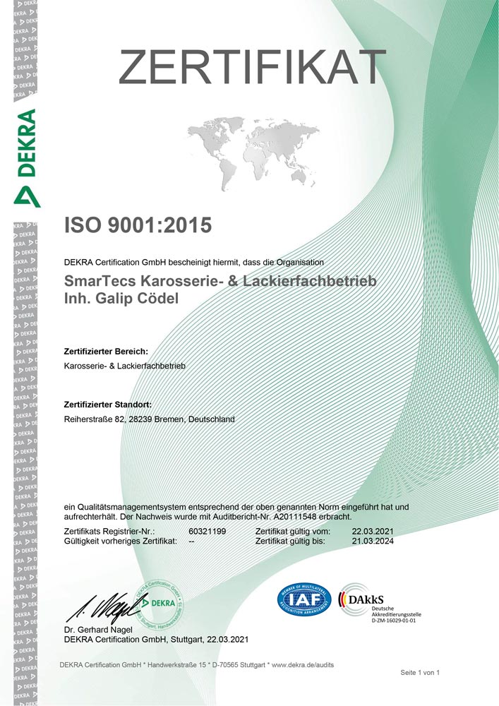 Seit 2021 ist das Unternehmen von der Dekra ISO 9001 zertifiziert.